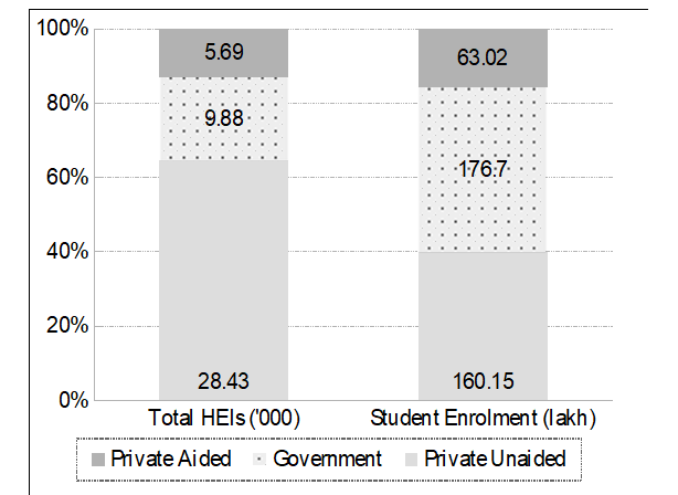- Together, these private unaided institutions form 64.6 percent of HEIs, up from 62.4 percent in 2014–15;