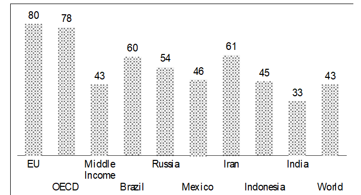 Despite this increase, India’s GER in higher education is way behind that of developed countries, whose GER is as high as 78–80, and is also much below that of many developing nations (Chart 4.9).
