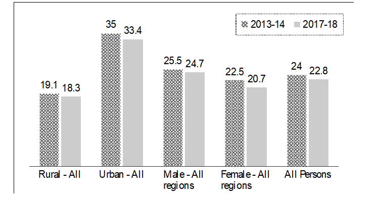 - Rural-urban inequality was high. In 2013–14, average rural GAR (19.1 percent) was just over half of urban GAR (35 percent).