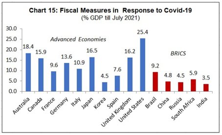 Official policy, too, in the subsequent period reflected this understanding. India’s fiscal response to Covid-19, as a percentage of its GDP, was not only smaller than the response of advanced countries, but also that of other BRICS countries. While the Government distributed grains from its foodstocks free, it held back on other spending. Unlike other countries, which focussed on ‘demand-side’ measures, India focussed on ‘supply-side’ measures, i.e., measures intended to spur private investment. It considered this its unique contribution to the global Covid response.