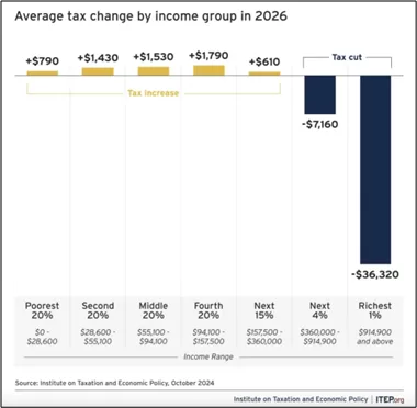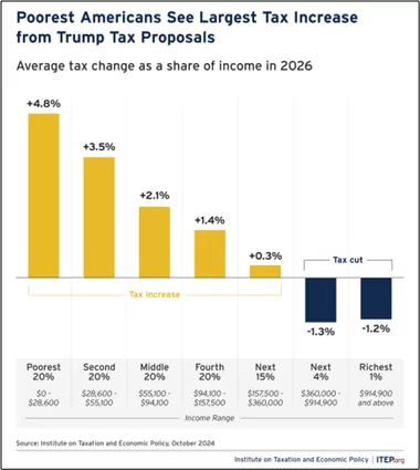 Economists at the Institute on Taxation and Economic Policy estimated that the people in the US who will see the highest increase in taxes during Trump’s second term are the poor and the working class, whereas the rich will have their taxes cut.