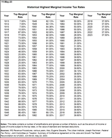The top marginal income tax throughout most of US history was much higher.