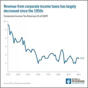 In the 1950s, corporate income tax revenue represented approximately 5% of GDP.