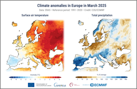 Some parts of the continent experienced the “driest March on record and others their wettest” for about half a century, said Samantha Burgess of the European Centre for Medium-Range Weather Forecasts, which runs the Copernicus climate monitor.