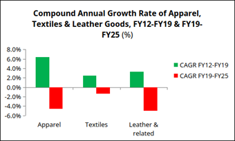 Some other items of mass consumption are strangely classified by the IIP as “consumer durables”, presumably on the ground that they last more than a year. However, it makes more sense to group textiles, apparel, and leather goods with soap and toothpaste rather than with automobiles and electronic items. The production of textiles, apparel and leather goods provides a similarly grim picture.
