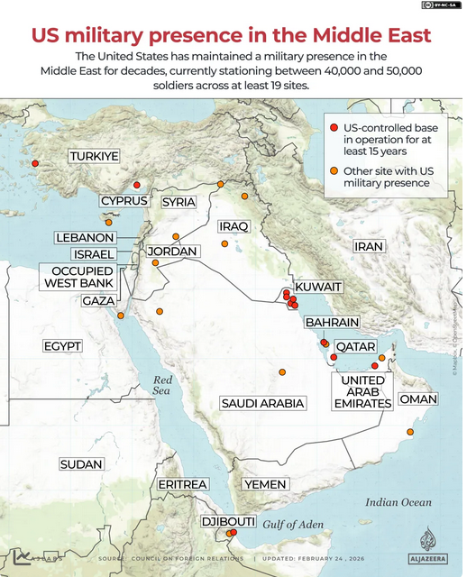 The claim that ‘Iran has started a regional war’ has served as the chief alibi for those who wish to line up behind the US and Israel. The reality is that (1) the US has stationed its forces throughout the region by agreement with client states, and (2) throughout the imperialist build-up to the US-Israeli aggression, Iran consistently warned that, if attacked, it would strike back against all US and Israeli assets in the region.