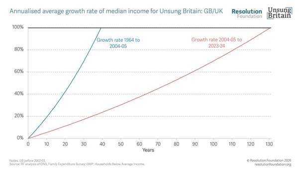 In previous posts, I have outlined in detail how the British capitalist economy is broken. Now the Resolution Foundation, a UK think tank, has published a miserable analysis of the situation for most British households and, in particular, British youth. “Unsung Britain” – are the 13 million working-age families (containing 27 million people) living in the bottom half of the disposable income distribution. “These families are working more, caring more, and contributing more than in previous generations, yet the rewards for those efforts have stagnated.” Typical disposable incomes for this group have grown by just 0.5 per cent a year since the mid-2000s – a fraction of the growth enjoyed in previous decades. In the 40 years leading up to 2004-05, incomes for similar families doubled. At today’s pace, achieving the same improvement would take over 130 years!
