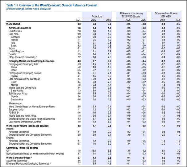 When the IMF released its latest round of economic growth forecasts, something glaring stood out: the Fund had predicted that only one major economy would enter recession this year despite the clear evidence that Trump’s tariff tantrums were already shoving a big stick in the global economy’s spokes. That country was Mexico, whose economy the Fund expects to contract by 0.3% in 2025. As you can see in the table below, it was the largest growth forecast cut of all the major world economies.
