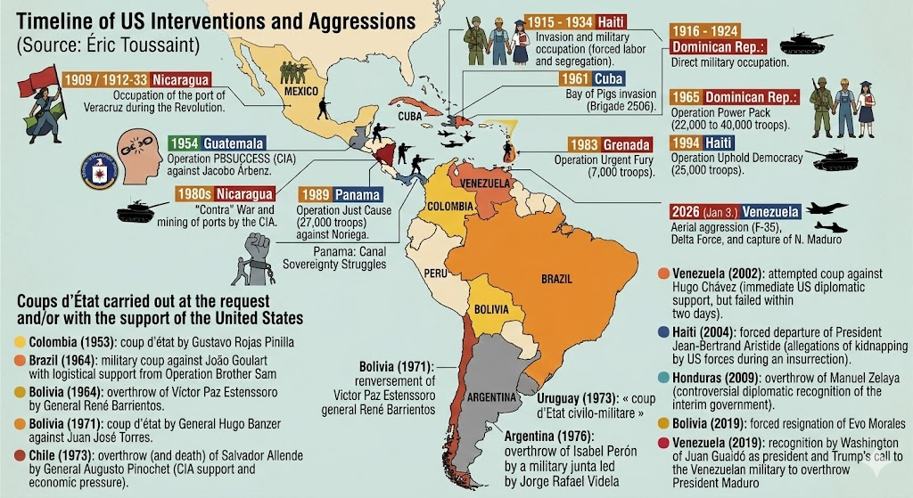 Throughout the 20th and 21st centuries, the United States has projected this logic throughout the Western Hemisphere under successive pretexts: the fight against communism, the defence of democracy, the war on terrorism. The methods have evolved, but the objectives have remained the same: to control territories, resources and political decisions of peoples.